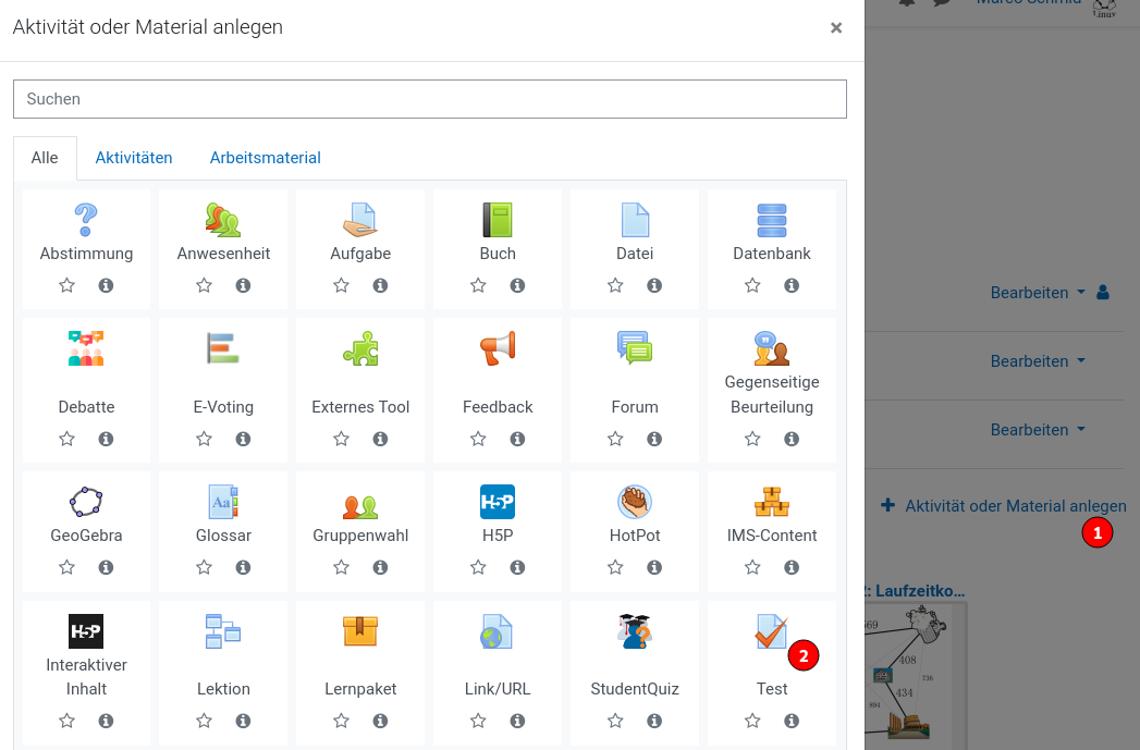Jeder Moodlekurs birgt im Hintergrund eine Fragesammlung. Diese werden über den Kurs selber oder häufig beim erstellen eines Tests erstellt.