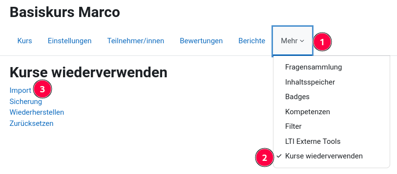 - Datei Speichern und diese Datei dann analog im anderen Kurs importieren.